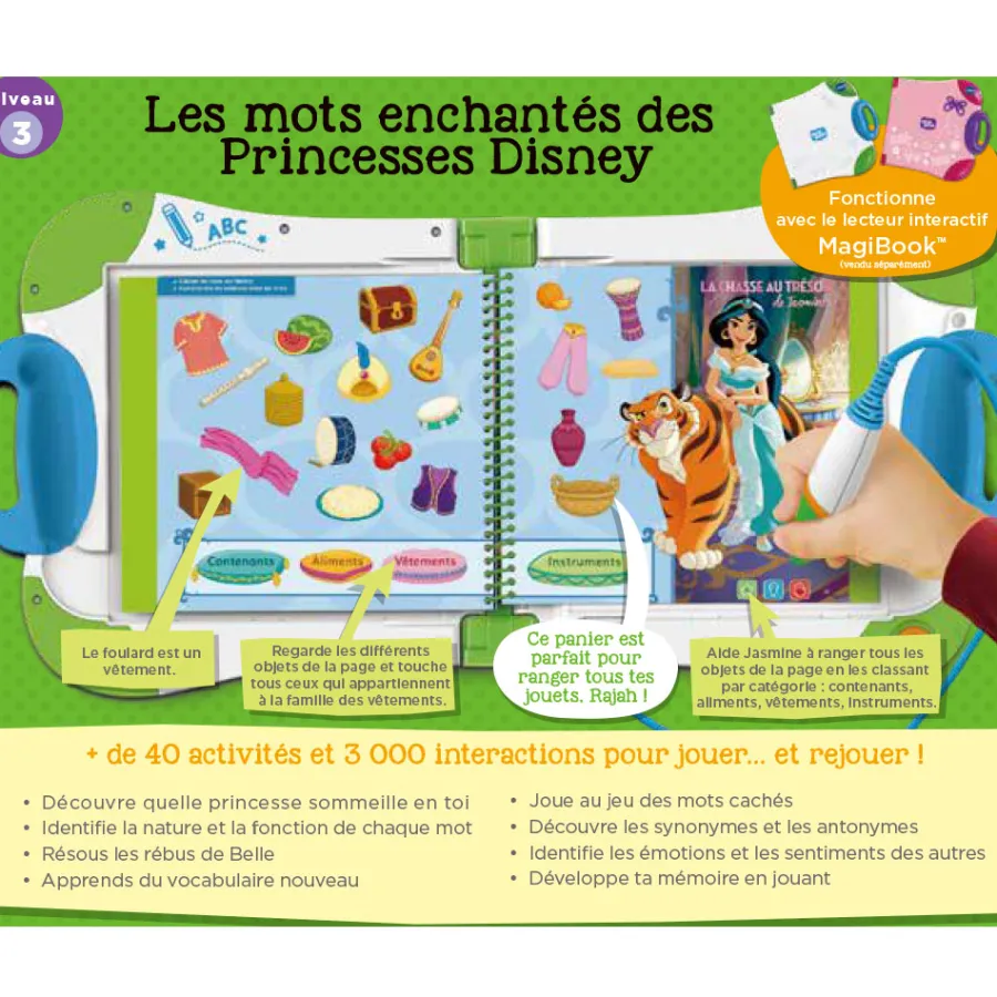Decouvre Le Monde Des Princesses Disney Grace A Ton Livre Interactif Magibook ! 32 Pages Illustrees Pour Joue Avec Les Mots Et Decouvre Du Vocabulaire Nouveau En Compagnie Des Princesses Disney !