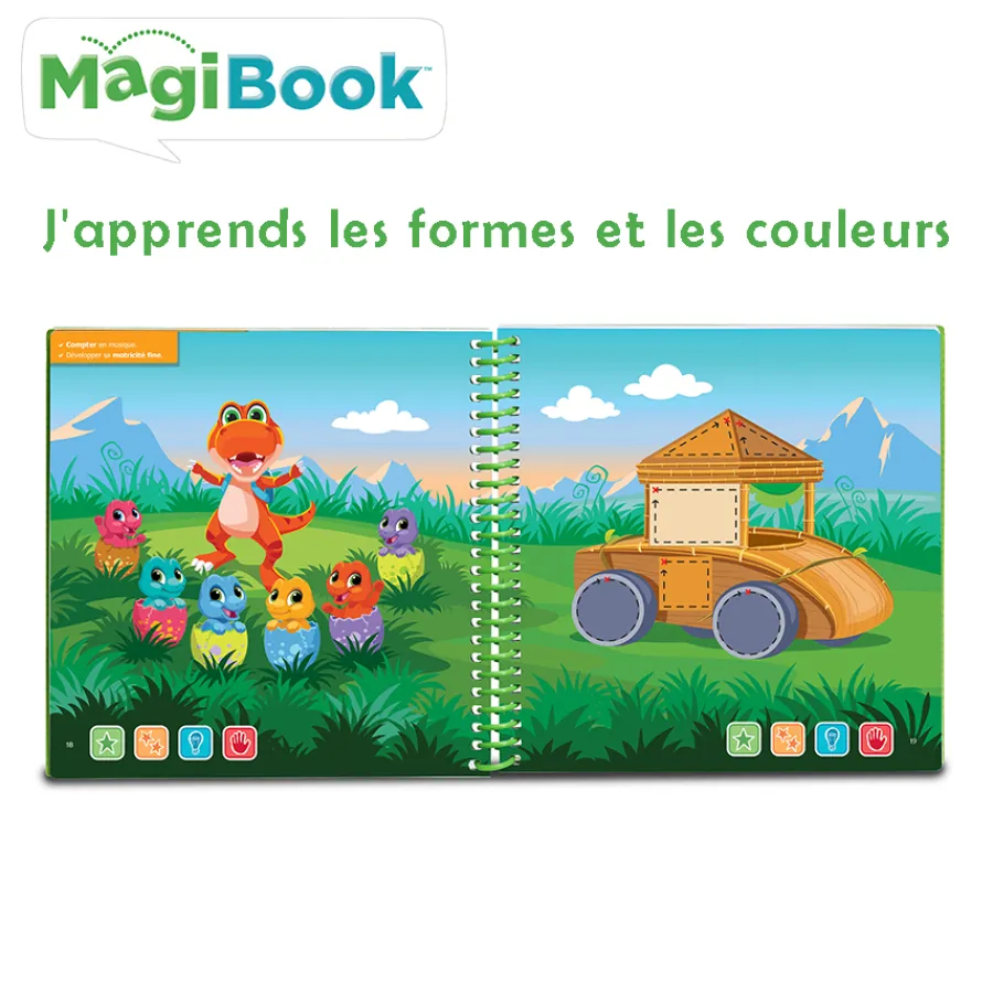 Apprends Les Formes Et Les Couleurs Avec Ton Livre Interactif Magibook ! 32 Pages Illustrees Pour Se Familiariser Avec Les Formes Et Les Couleurs, Et Apprendre A Tracer Des Lignes Et Des Courbes.