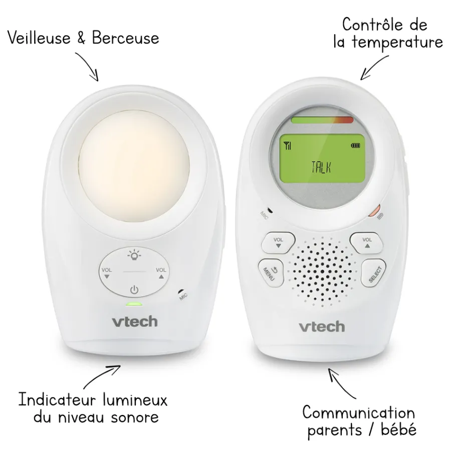 Un Babyphone Avec Fonction Veilleuse Et Attache-Ceinture ! Ce Babyphone Utilise La Technologie Numerique Dect 6.0 Permettant Une Ecoute D’Excellente Qualite, Sans Aucune Interference Pour Rester En Contact Continu Avec Bébé En Toute Securite.