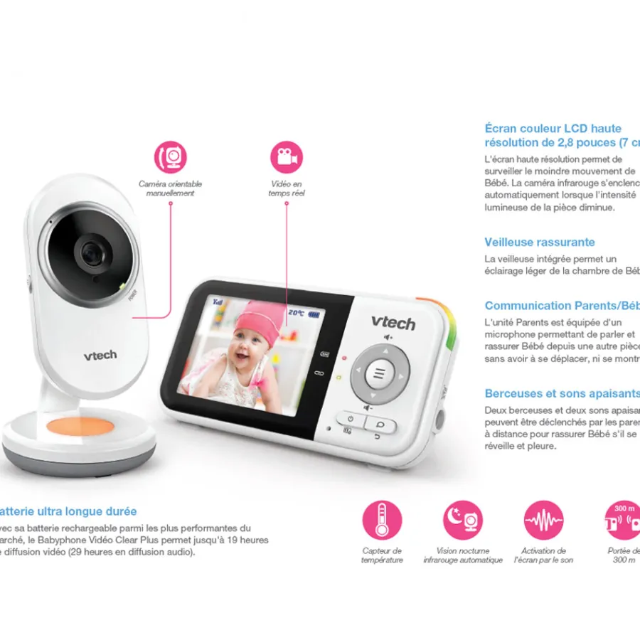 Avec Sa Camera Orientable Manuellement, Sa Veilleuse Rassurante Et Sa Batterie Ultra Longue Duree, Ce Babyphone Video Vous Permettra De Veiller Sur Bébé En Toute Securite.