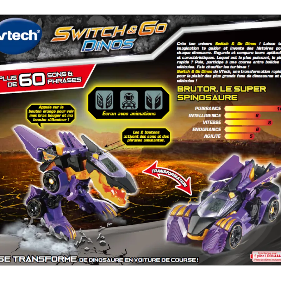 Un Vehicule De Course Interactive Qui Se Transforme En Dinosaure Feroce ! Cree Ton Univers Switch & Go Dinos Pour Le Plaisir Des Plus Grands Fans De Dinosaures Et De Véhicules !