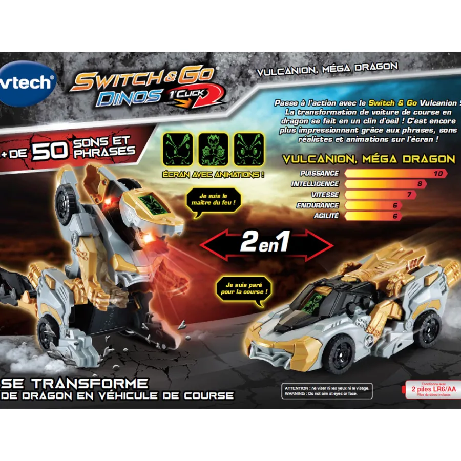Vulcanion, Mega Dragon Des Switch & Go Dinos Est Un Vehicule Qui Se Transforme En Dragon En Un Seul Clic, Des 4 Ans.