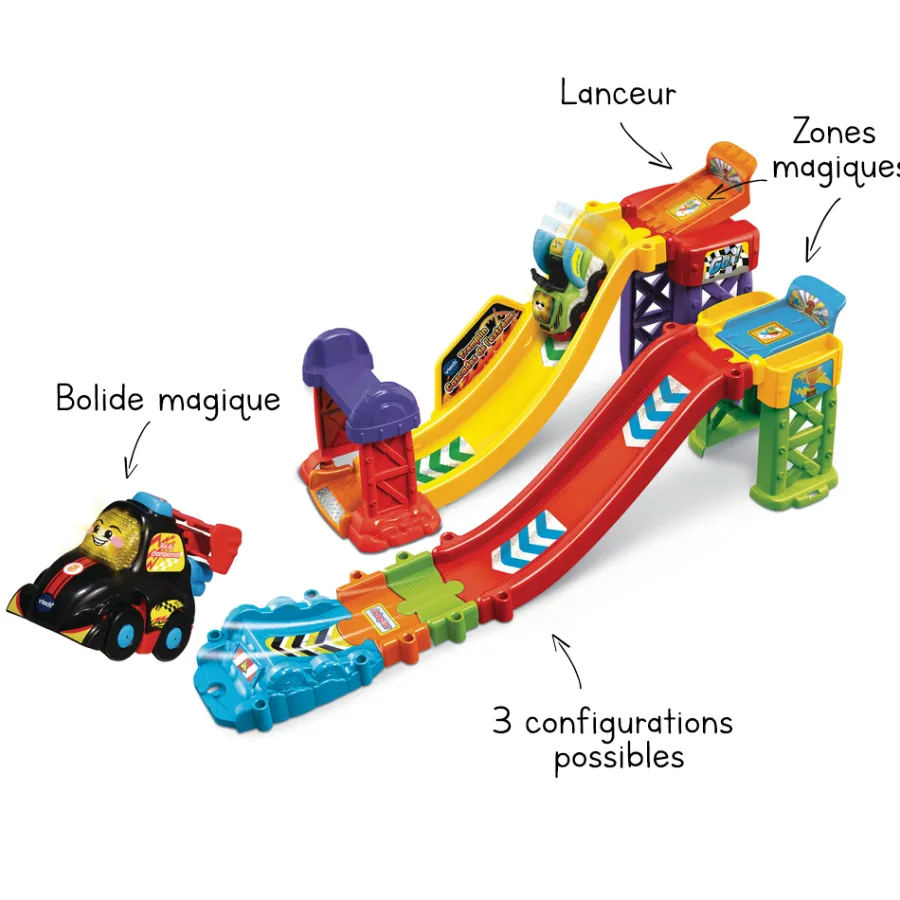 Pret, Feu, Partez ! Avec Le Tremplin Cascades De L’Extreme Et Ses 3 Configurations Possibles, Lucas Roi Du Championnat Fait Le Plein De Sensations Fortes !Le Tremplin Cascades De L’Extreme Est Un Super Tremplin Pour S’Amuser Avec Lucas Roi Du Championnat, Le Tut Tut Bolides Inclus !L’Enfant Leve Le Lanceur Pour Faire Partir Lucas Et Le Voir Devaler La Piste ! Le Tremplin Peut Etre Construit En 3 Configurations Differentes : Double Tremplin, Super Tremplin Ou Tremplin Cascade Pour Encore