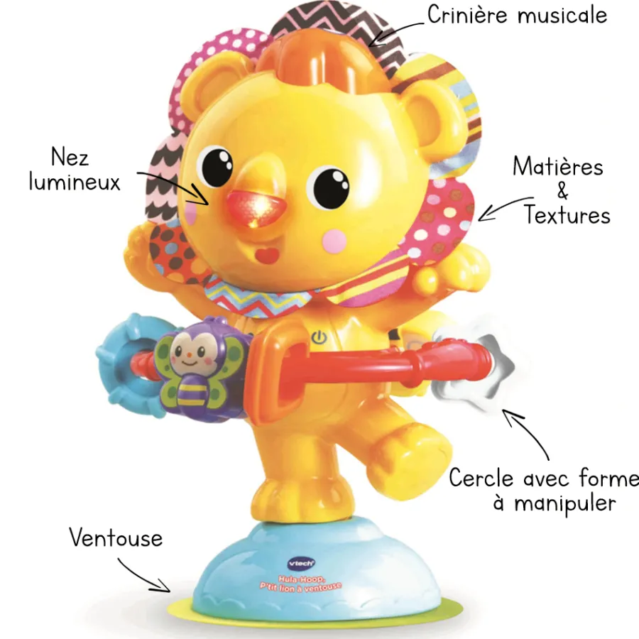 Hula-Hoop, P’Tit Lion A Ventouse Est Un Jouet Musical Concu Pour Les Chaises Hautes, Ideal Pour Bébé De 6 A 24 Mois.Grace A Sa Ventouse Anti-Chute, Il S’Attache Facilement.