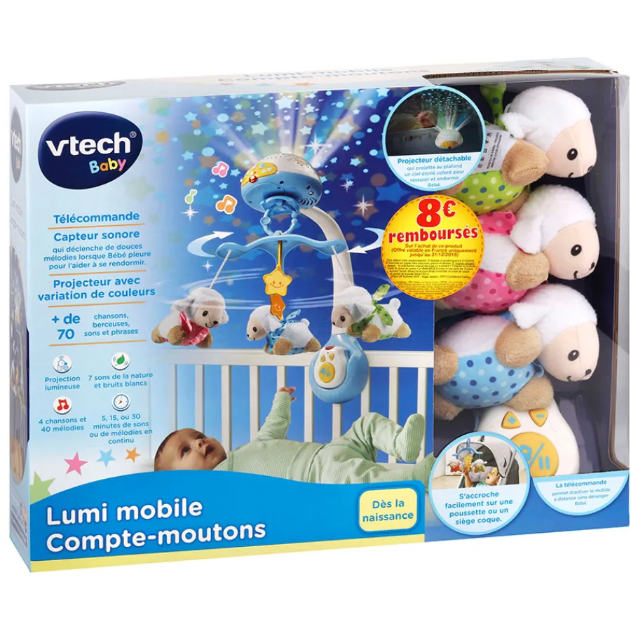 VTech Baby Lumi Mobile Compte-Moutons Bleu – Mobile Pour Bébé- Veilleuses Et Mobiles Bébé