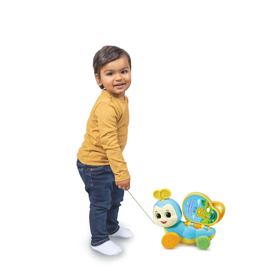 Le Rouli Livre Papillon Encourage Votre Tout-Petit Dans Ses Decouvertes. En Tirant Sur La Corde, Il S’Amuse A Faire Avancer Le Papillon Et Declenche Des Chansons Et Des Phrases Amusantes !