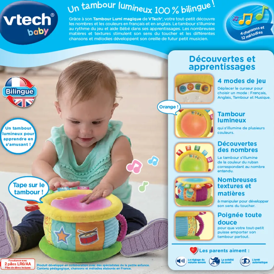 VTech Baby Tambour Lumi Magique – Jouet Musical- Instruments De Musique