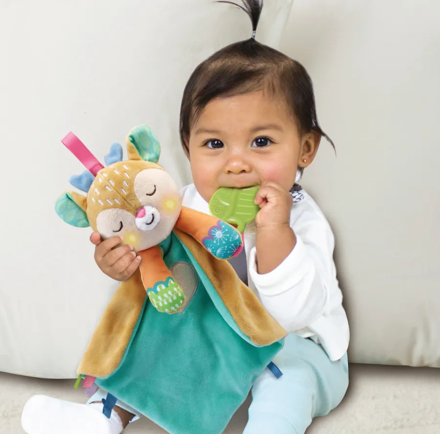 Tifan, Mon Doudou Berceuses Est Un Adorable Petit Compagnon Qui Apaise Votre Enfant Tout Au Long De La Journee. Grace A L’Attache Tetine, Il Peut Emporter Sa Tetine Partout Avec Lui Ou Bien Utiliser La Feuille De Dentition Pour Soulager Ses Dents.
