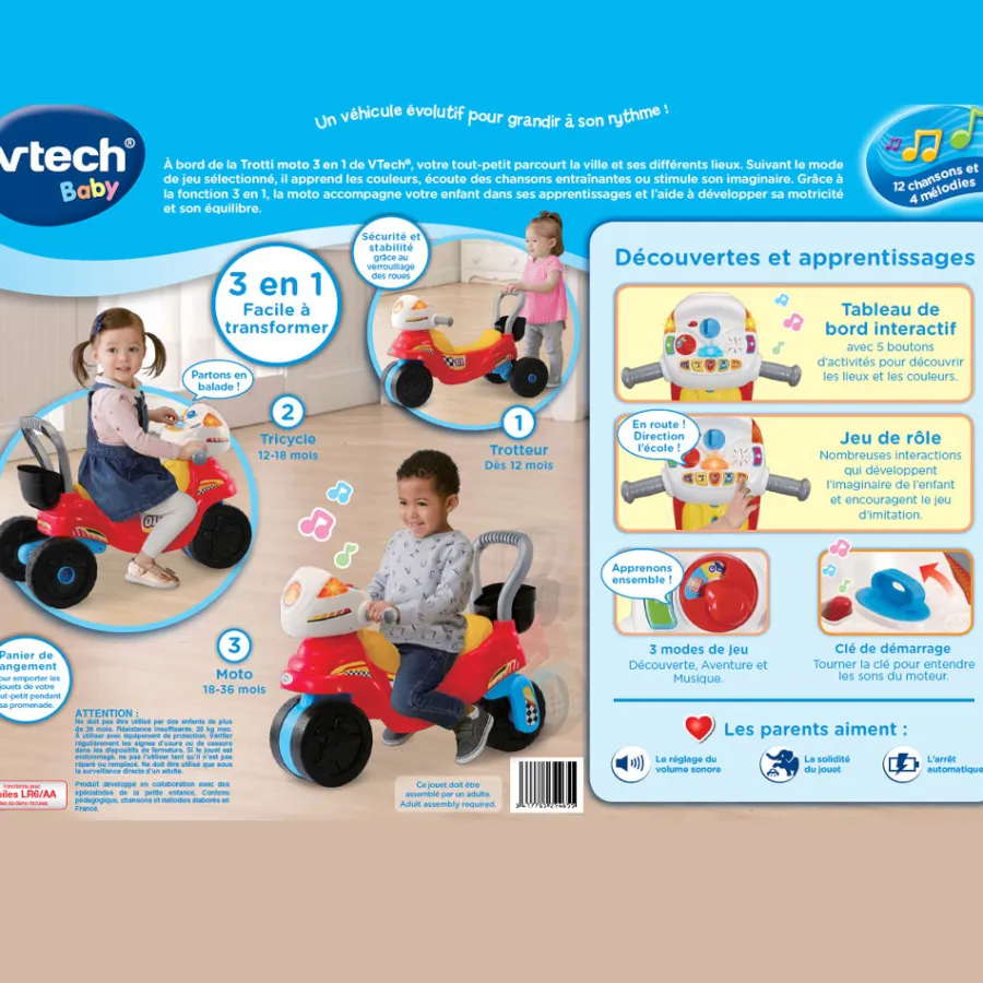 VTech Baby Trotti Moto 3 En 1 – Trotteur Bébé- Porteurs, Trotteurs