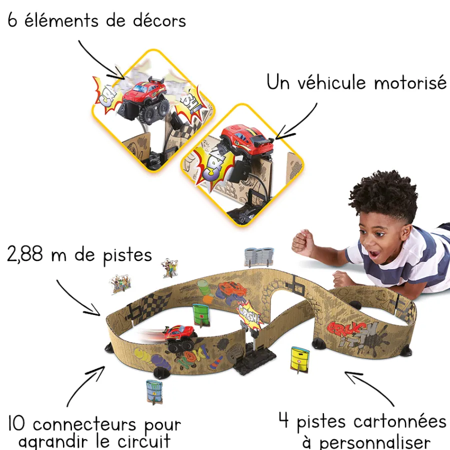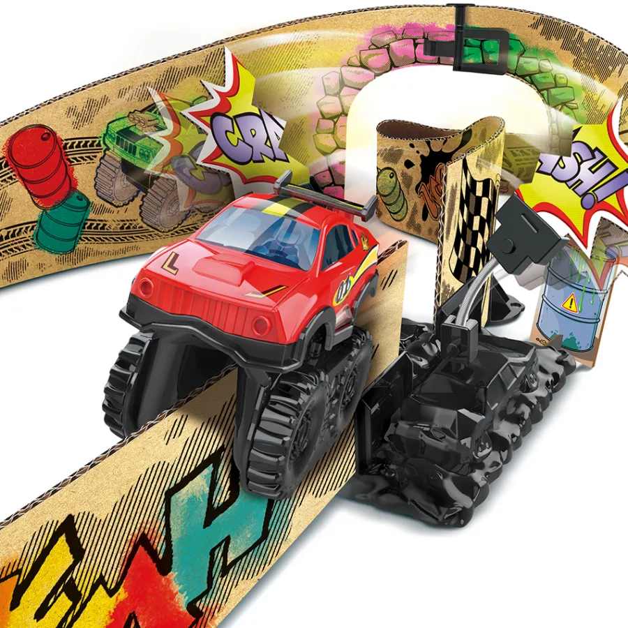 Un Circuit Geant De 2,88M, En Carton, Sur Le Theme Des Cascades, Avec Un Vehicule Motorise. Il Peut S’Etendre A L’Infini Et Etre Customise Pour Le Rendre Unique ! Des 5 Ans.