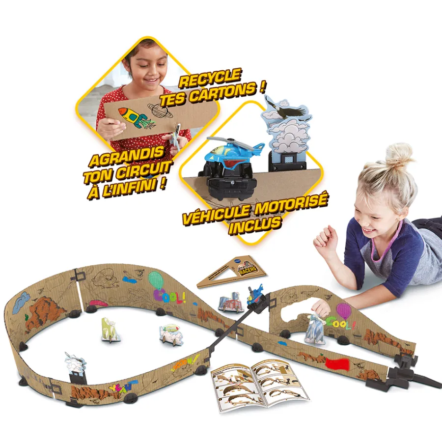 Un Circuit En Carton Sur Le Theme Aerien Avec Un Helico Motorise. 3,6M De Pistes Et Possibilite D’Etendre Son Circuit A L’Infini En Creant Ses Propres Pistes En Carton Et En Les Customisant ! Des 5 Ans.