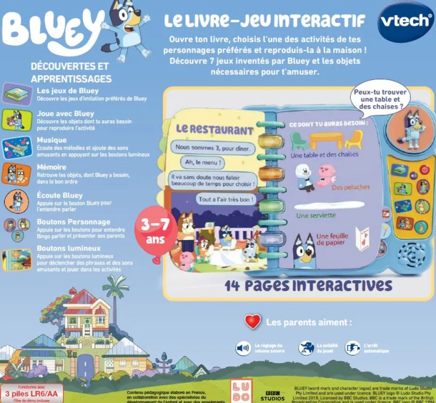 VTech Mon Livre-Jeu Interactif De Bluey- Pat’Patrouille, Peppa Pig, Bluey