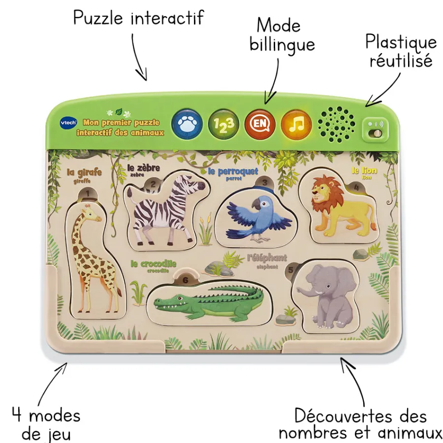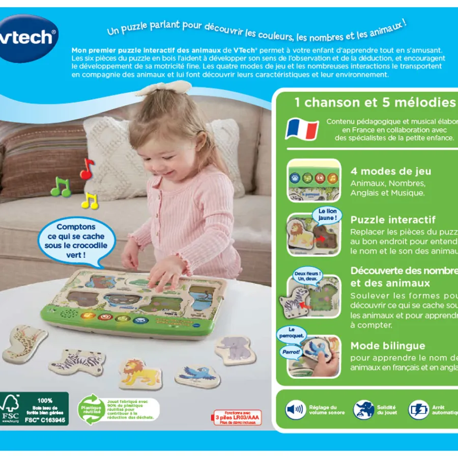 VTech Mon Premier Puzzle Interactif Des Animaux- Jouets À Empiler, À Encastrer